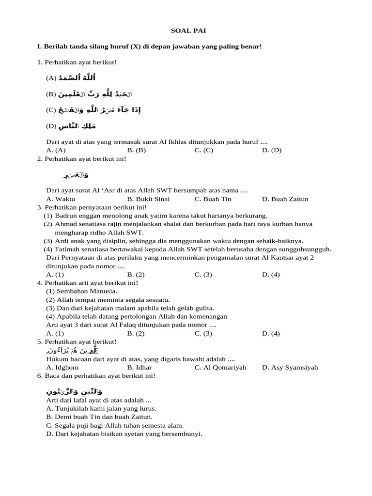- Pembentukan Karakter: Lebih dari sekadar menguji pengetahuan, US Agama Islam juga menekankan pada penerapan nilai-nilai Islam dalam kehidupan sehari-hari. Soal-soal ujian seringkali dirancang untuk menguji kemampuan siswa dalam mengambil keputusan yang sesuai dengan ajaran Islam dalam berbagai situasi.